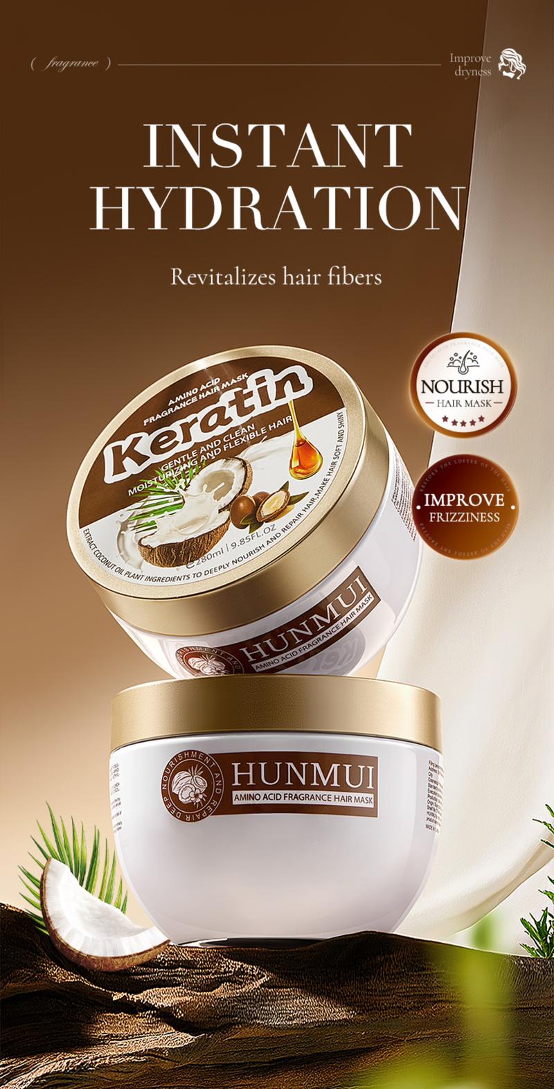 4:Deep Conditioning Hair Mask for Dry, Damaged Hair, Promotes Growth: HUNMUI Keratin Hair Conditioner is enriched with keratin, biotin, and coconut oil to leave hair smooth and shiny! Our curly hair conditioner and hair mask offer hydration and repair effects far exceeding argan oil!